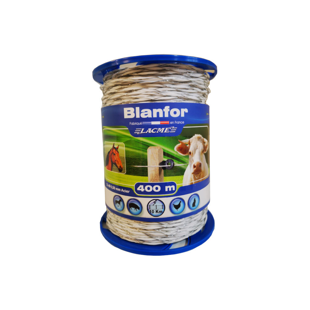 Corda Bianca con conduttori in acciaio galvanizzato, per recinti elettrici, lunghezza 400m.