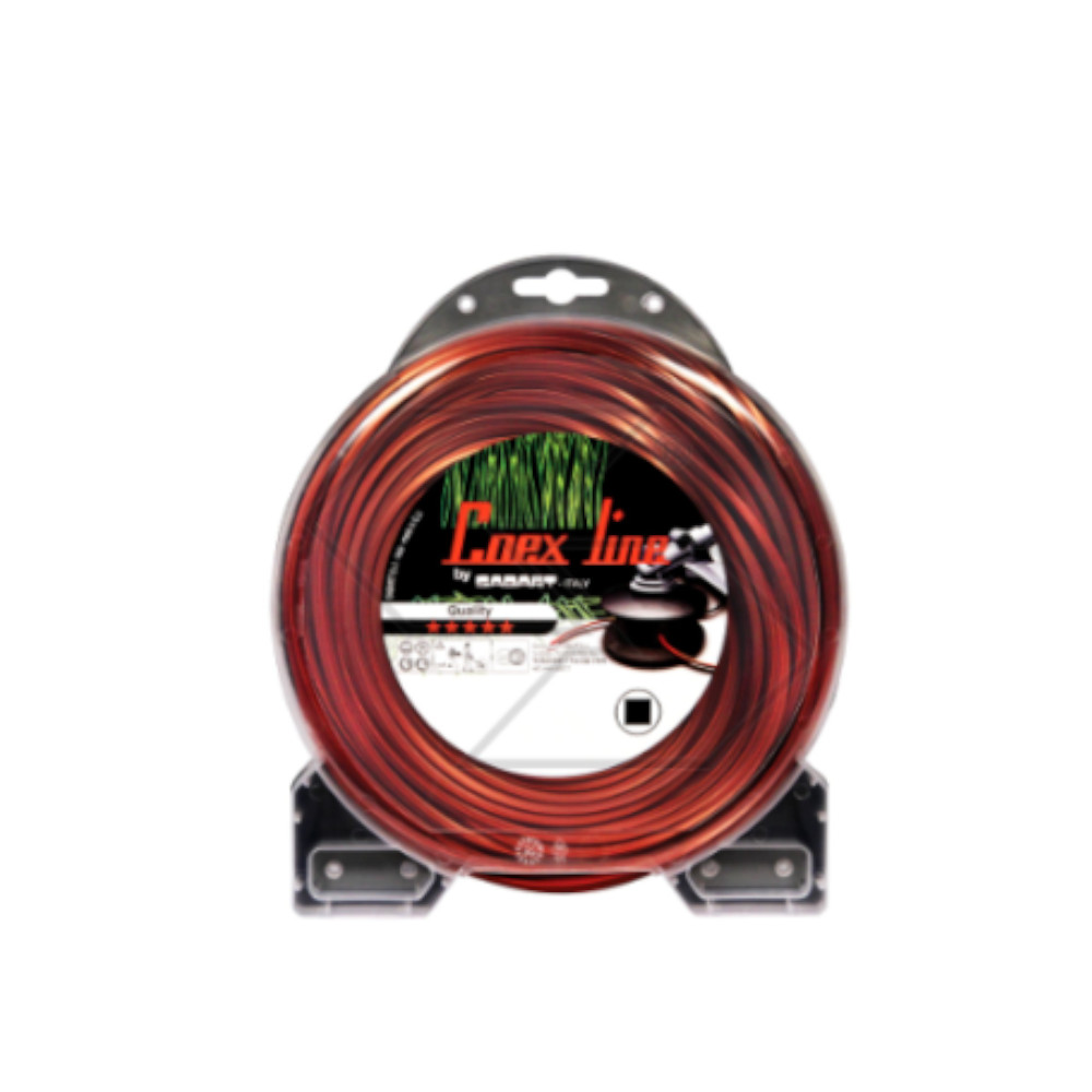 Filo COEX ROSSO in nylon armato a sezione quadra Un filo in nylon coassiale ad uso professionale costruito con materiali ritenuti ottimali per produrre filo di super qualita. Molto più resistente al logorio ed alle vibrazioni di un filo tradizionale, per la sua tecnica e resistenza viene utilizzato dai manutentori del verde che lo considerano adatto per affrontare le insidie che un filo da taglio deve sopportare. Possibilita di impiegarlo su tutti i tipi di testine anche automatiche, in quanto la superficie dispone di una pellicola che evita la fusione e l''incollaggio provocato dalle vibrazioni trasmesse dalla testina al filo.
