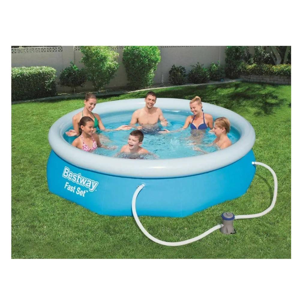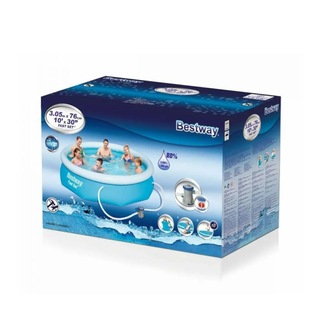 Mod. 57270. Dimensioni: diametro 305x76h cm. Capacita' (al 80%) 3.638 L. Peso 10,0 kg. ACCESSORI INCLUSI: Pompa filtrante da 1.249 L/h.