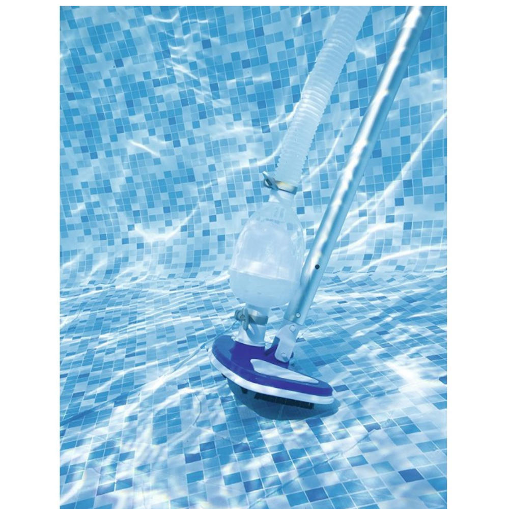 Bestway Kit, sistema di pulizia piscina deluxe, include spazzola, retino e skimmer, asta in alluminio regolabile, tubo da 6 mt. x 32 mm di diametro, sacco per le foglie ed i rifiuti rimovibile e riutilizzabile.