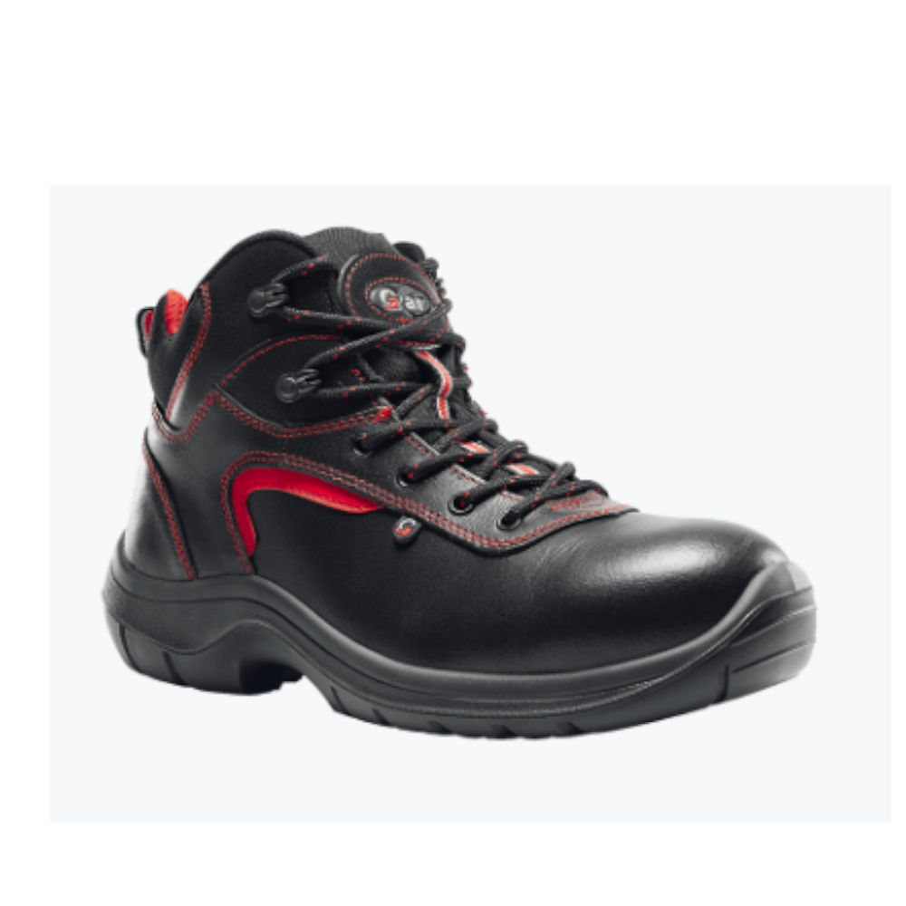 Calzatura alla caviglia in pelle fiore liscia idrorepellente, con rapido sfilamento e protezione metatarsale, colore nero, fodera 100% poliestere, sottopiede non metallico HRP, soletta Light & Soft antistatica e traspirante, suola bicomponente (gomma-poliuretano) antiabrasione, antiolio, antistatica e anticalore. Campi di impiego suggeriti - Siderurgica/fonderie - Industria meccanica - Industria navale - Industria mineraria TOMAIO Pelle fiore liscia nera con imbottitura al malleolo FODERA 100% poliestere con lavorazione a nido d’ape SOLETTA LIGHT & SOFT, antistatica e traspirante SUOLA Bicomponente, gomma-poliuretano PUNTALE Non metallico TOP COMPOSITE LAMINA Sottopiede non metallico HRP INSOLE CALZATA 12