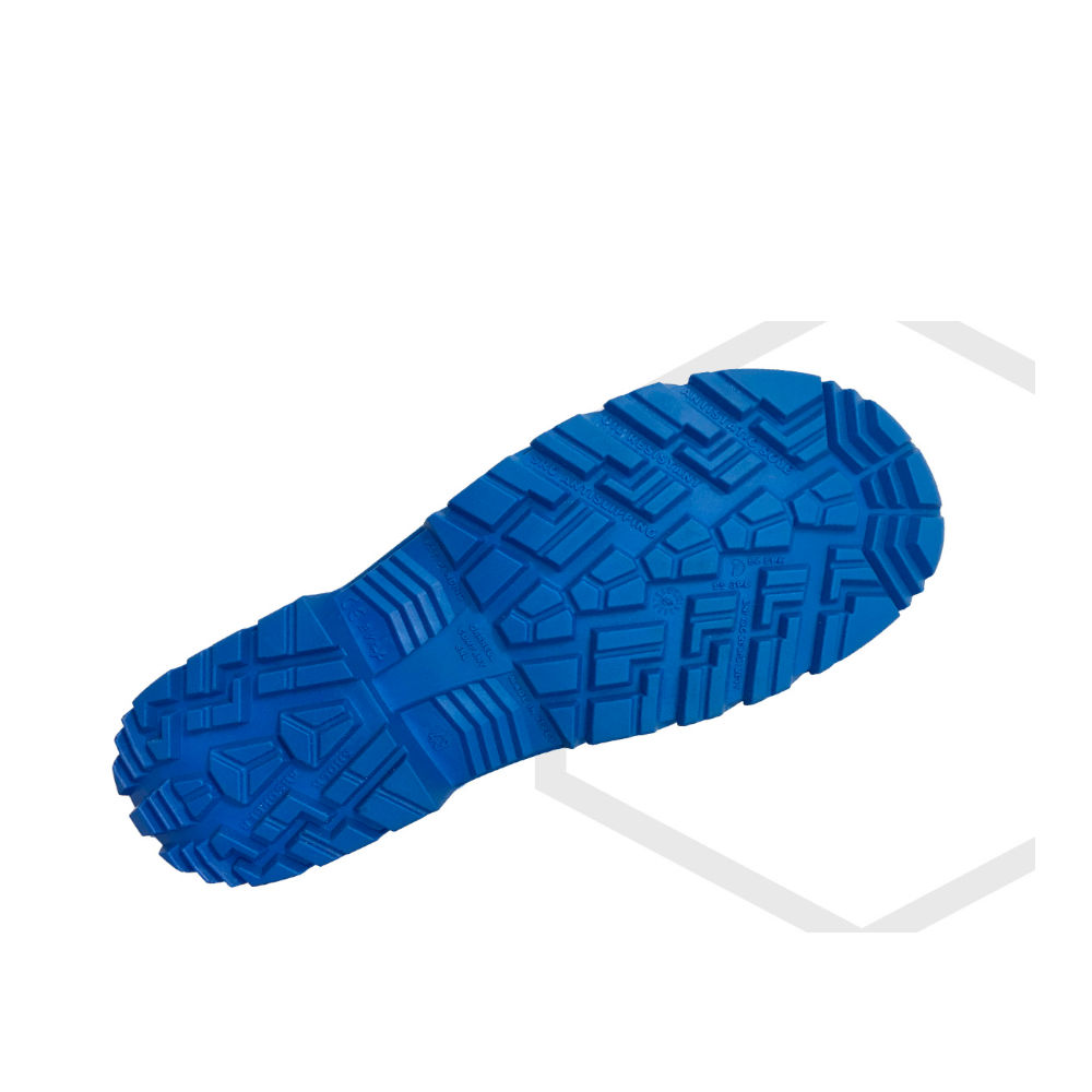 La progettazione della suola mira a soddisfare non solo l’esigenza di comfort, ma anche a fornire la necessaria prevenzione favorendo numerosi benefici a livello ortopedico. Con i suoi 4cm, la suola presenta un’altezza tale da garantire un primo step di isolamento termico, implementato in seconda battuta da un sottopiede antistatico; per evitare talloniti e tendiniti, nella parte del tacco é stato conferito maggiore spessore alla tomaia in gomma espansa per una funzione antishock, vitale per il comfort di coloro che fanno un lungo uso del dispositivo. Il design del battistrada é stato progettato per rendere la suola antiscivolo (anti-slipping) su pendenze varie, ed é realizzato con materiali resistenti agli oli e agli idrocarburi specifici del settore; inoltre sulla struttura della suola é stato ricavato un “ferma-gradino”, e tutte le rientranze date dal disegno sono state scaricate verso il suolo affinché il battistrada conservi il grip e risulti autopulente in fase di deambulazione. Lo stivale é infine dotato di un pratico scalzante (kick-off) per facilitare l’estrazione del piede.