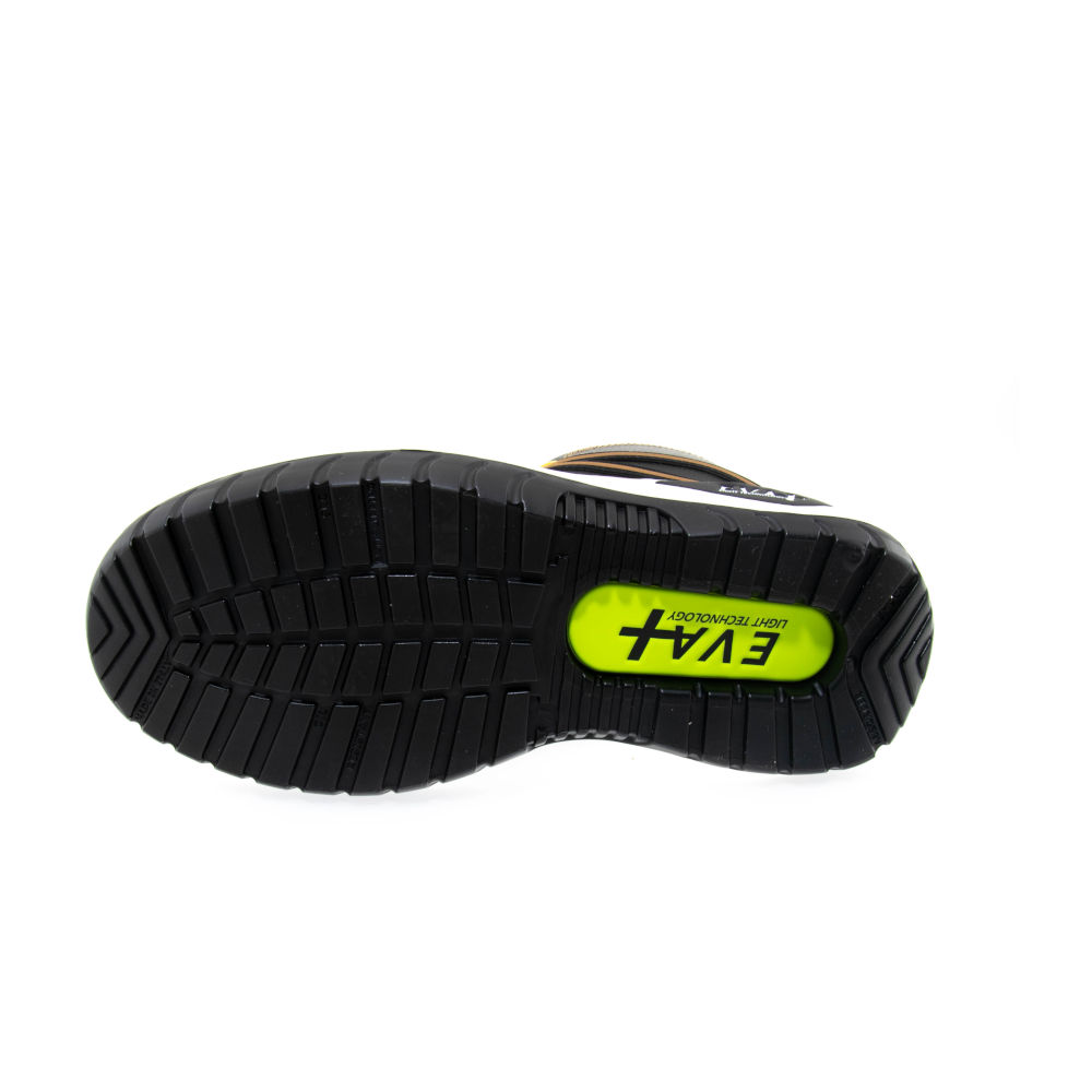 Calzatura alta in Microfibra nera , fodera 100% poliestere, sottopiede non metallico HRP, soletta Light & Soft antistatica e traspirante, suola in poliuretano resistente alle flessioni e alle abrasioni, antiolio, antiscivolo, antistatica, con cuscinetto SOFT WALK all’interno Campi di impiego suggeriti Ind. chimica/alimentare, edilizia/carpenteria, lavori leggeri ,ind. meccanica, ind. Navale Cooperative Consigli di manutenzione pulire periodicamente i solchi della suola e il tomaio con materiali non aggressivi che potrebbero compromettere qualità, sicurezza e durata della calzatura, non asciugare in vicinanza o a contatto diretto con fonti di calore. TOMAIO Microfibra nera. Inserti in HIGH-TEX FODERA 100% poliestere con lavorazione a nido d'ape SOLETTA LIGHT & SOFT, antistatica e traspirante SUOLA Poliuretano PUNTALE Non metallico TOP COMPOSITE LAMINA Sottopiede non metallico HRP INSOLE CALZATA 12