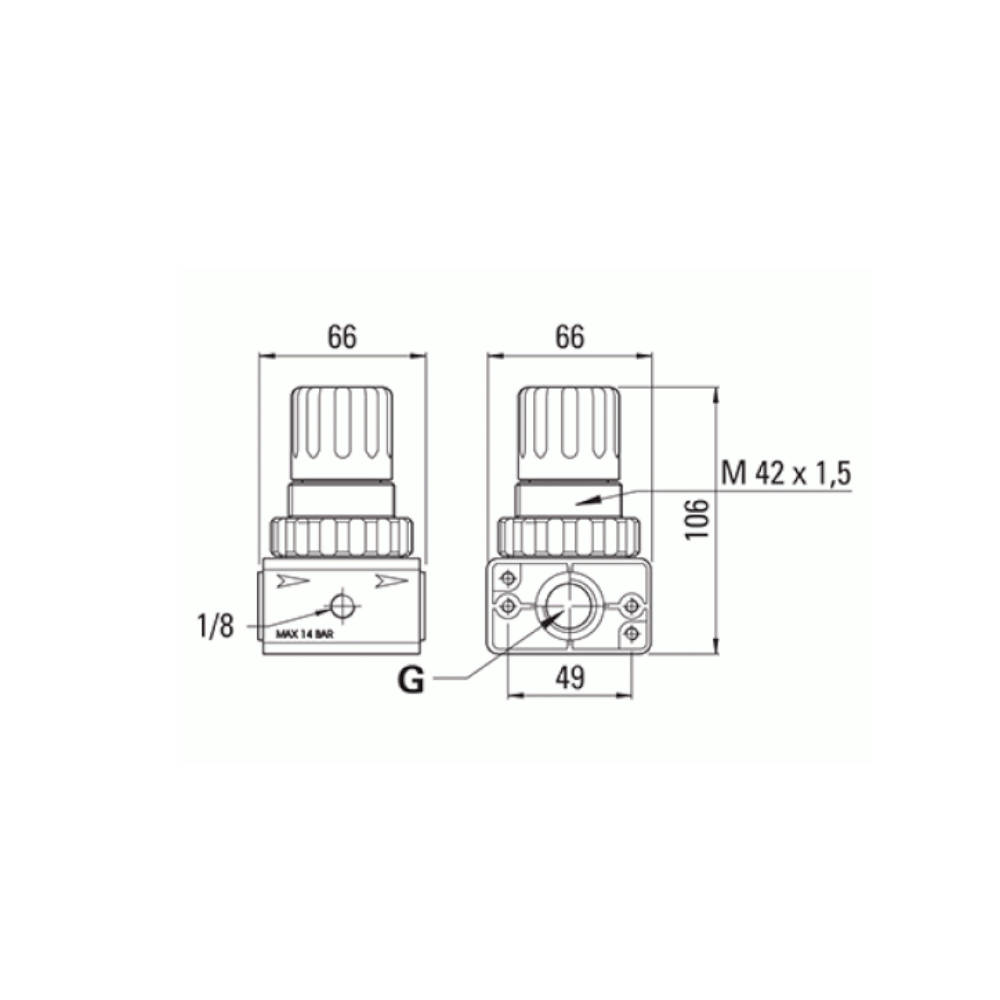 Riduttore di pressione a cilindro da 1/2 pollici con manometro