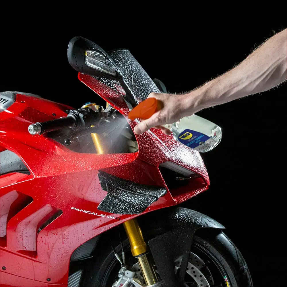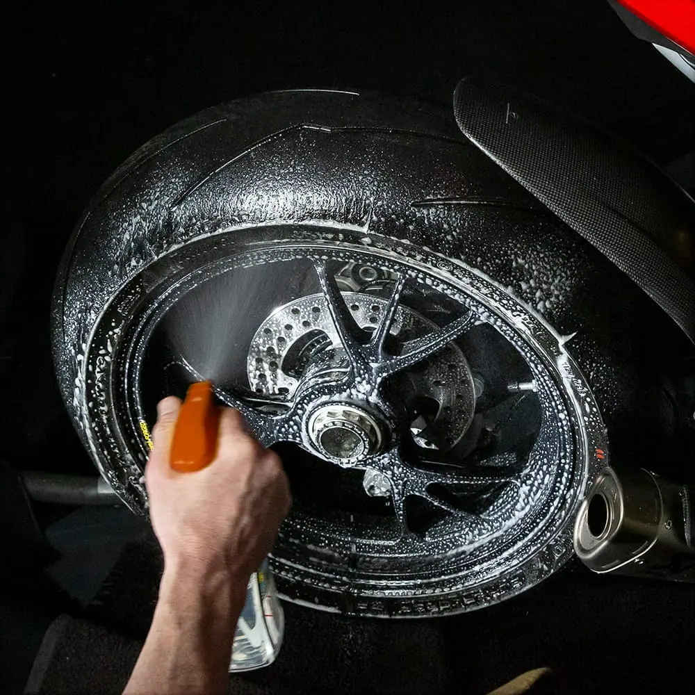 Il detergente universale rimuove lo sporco proveniente dall’inquinamento stradale. La sua formula dà una finitura perfetta e può essere usato su vernice, plastica, gomma, alluminio, cromature, fibra di carbonio e pastiglie dei freni.