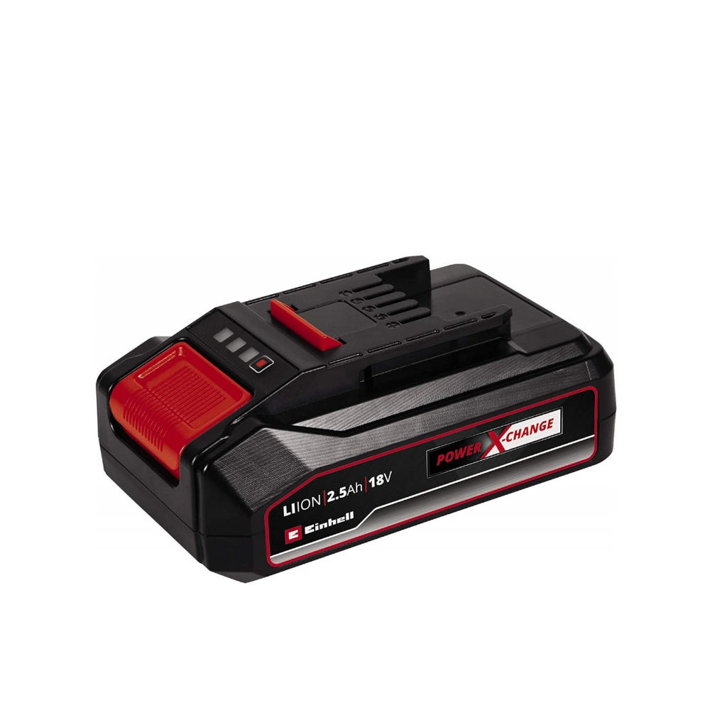 La batteria Einhell da 18V 2,5 Ah Power X-Change appartiene al sistema di batterie intercambiabili e combinabili Power X-Change di Einhell. Le batterie Power X-Change universalmente applicabili forniscono energia e resistenza a tutti gli utensili a batteria dell'intera famiglia di prodotti in giardino e in officina. I vantaggi per il cliente sono evidenti: I vantaggi per il cliente sono evidenti: con una batteria e un caricabatterie per tutti i dispositivi non solo si risparmiano costi considerevoli, l'applicazione universale protegge l'ambiente fornendo flessibilità in casa e in giardino. In questo modo ci si lasciano alle spalle problemi di disordine e confusione tipici di quando si possiedono batterie e caricabatterie differenti per ogni apparecchio. La batteria di alta qualità resiste all'effetto memoria e alla normale autoscarica della batteria per un'alta potenza costante. Power X-Change da 18 V 2,5 Ah è la batteria di base ideale della famiglia Power X-Change e adatto anche per l'uso TWIN-PACK in applicazioni a 36 V. Il sistema di gestione della batteria attivo e controllato dal processo ABS monitora costantemente i parametri della batteria utilizzando il microprocessore. Di conseguenza, garantisce massima sicurezza, prestazioni ottimali del dispositivo, massima autonomia e massima durata. Lo stato di carica attuale può essere controllato da un display a LED a 3 livelli. L'alloggiamento resiste a polvere, corrosione e influenze meccaniche. Utilizzando l'impugnatura incassata, la batteria può essere facilmente rimossa da tutti i dispositivi.