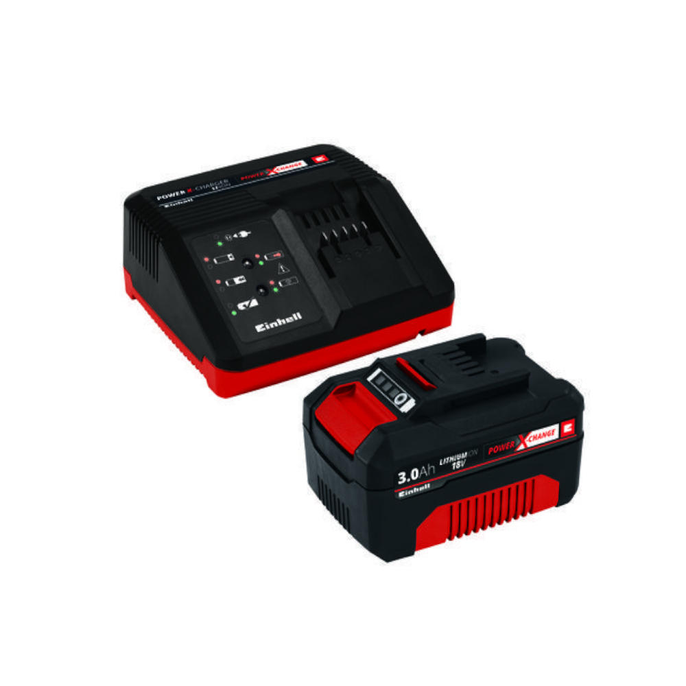Lo starter kit Einhell 18 Volt 3,0 Ah è la combinazione ottimale per gli appassionati di bricolage e giardinaggio che vengono così introdotti all'uso dei dispositivi appartenenti alla serie Power X-Change, oppure per coloro che desiderano integrare la dotazione di dispositivi PXC che già possiedono. Il kit comprende una batteria da 18 Volt 3,0 Ah Power X-Change e un sistema di caricabatterie di questa serie provvista di ioni di litio di ultima generazione. Il sistema di batterie multifunzione e intercambiabile Power X-Change è compatibile con tutti i dispositivi per giardinaggio e officina appartenenti alla medesima serie. Qualsiasi apparecchio appartenente alla serie Power X-Change è compatibile con qualsiasi potente batteria PXC. Inoltre, anche i caricabatterie di questa serie sono universalmente compatibili con qualsiasi batteria PXC. I vantaggi per il cliente sono evidenti: Il fatto di possedere un'unica batteria e un unico caricabatterie non rappresenta solamente un vantaggio in termini di costi! In questo modo ci si lasciano alle spalle problemi di disordine e confusione tipici di quando si possiedono batterie e caricabatterie differenti per ogni apparecchio. Massima sicurezza garantita anche quando si affrontano sessioni di lavoro lunghe e complicate grazie al sistema di gestione proattivo delle batterie di Einhell. Componenti di ultima generazione sorvegliano costantemente tutti i parametri durante l'esercizio. Il display LED a 3 livelli permette un facile controllo costante e veloce dello stato di caricamento. Le batterie che si rovinano a causa dell'inattività prolungata sono un problema superato con le batterie PXC di alta gamma: Le celle degli ioni di litio sono più resistenti al tipico scaricamento autonomo delle batterie. Il corpo della batteria con inserti gommati garantisce protezione contro gli urti e solida presa. Le apposite impugnature concave favoriscono l'ergonomia di manipolazione. Durante il ciclo di ricarica, il sistema di gestione intelligente garantisce la massima sicurezza. Allo stesso tempo i cicli di ricarica adattati realizzano un monitoraggio costante della batteria allo scopo di realizzarne un'alimentazione ottimale e di prolungarne la vita utile. Le informazioni più aggiornate sullo stato di caricamento attuale della batteria sono consultabili attraverso il sistema di ricarica a 6 livelli. Il caricabatteria è provvisto di occhielli incorporati che permettono di appenderlo agevolmente alla parete.