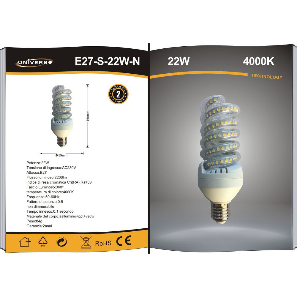 Lampadina LED a Spirale, a ridotto consumo energetico, permette di risparmiare fino al 90% rispetto alle classiche lampadine a incandescenza.