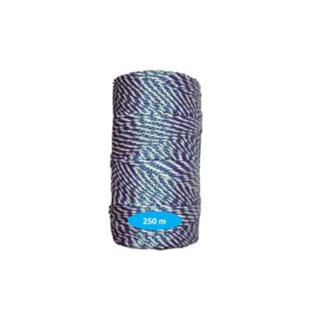 Corda Blu e Bianca con conduttori in acciaio inox, per recinti elettrici, lunghezza 250m.