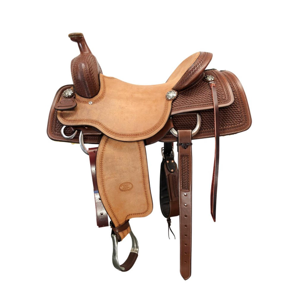 Sella Billy Cook modello cutter running, seggio in pelle rovesciata, arcione in legno ricoperto in rawhide, lavorazione border stamp.