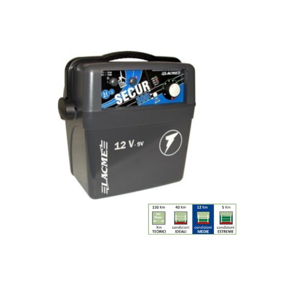 Secur 300 è il modello preferito dalle federazioni di caccia e daglia allevatori di pecore, è adatto per recinzioni molto lunghe, in condizioni difficili o con animali restii.