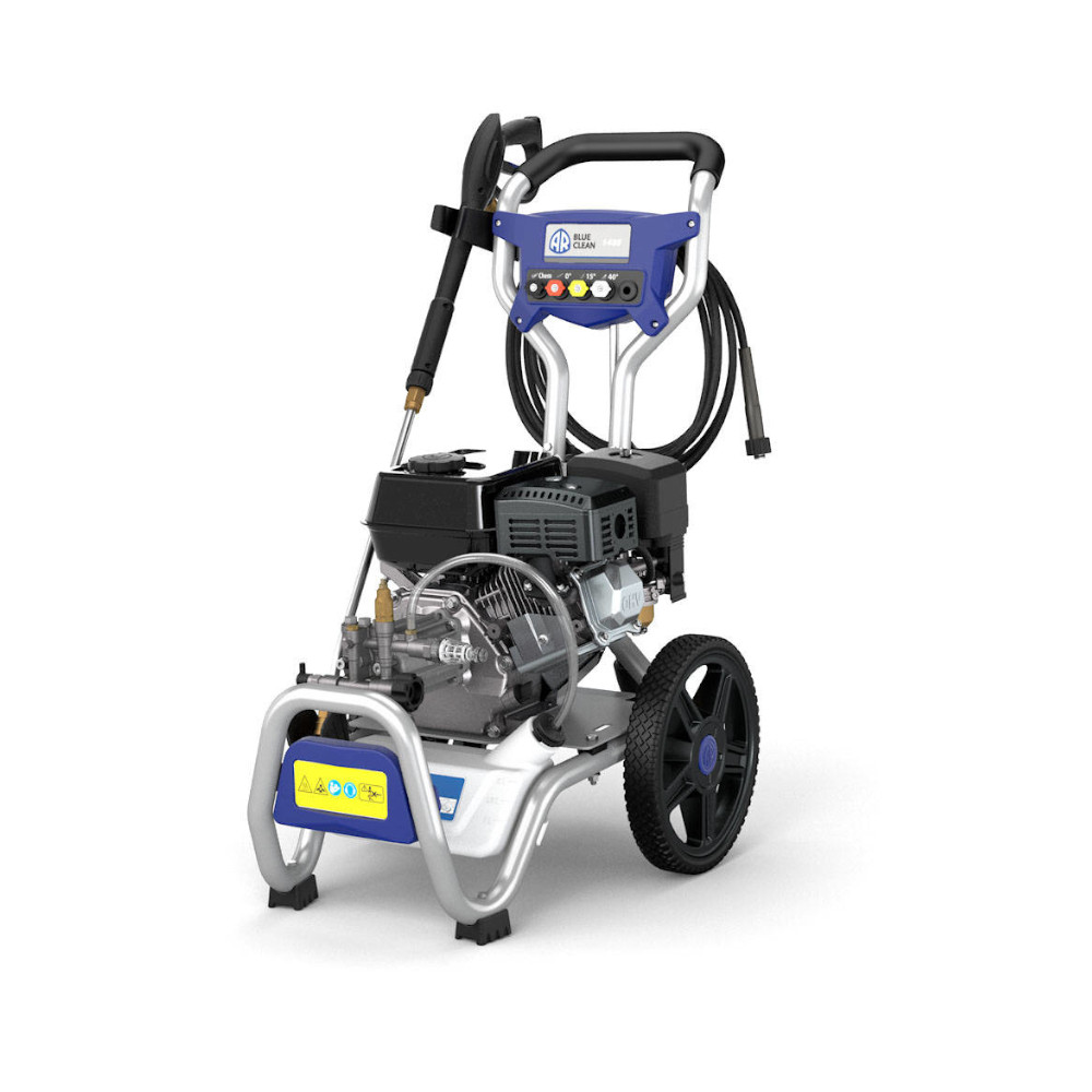 Carello completo di manico con due ruote e piedini antivibranti. Pompa a tre pistoni assiali comandati dal piattello oscillante. Valvola di by-pass automatica. Regolazione della pressione. Valvola termica. Aspirazione detergente incorporata. Motoriozzato Honda, con sensore mancanza olio. Livelli olio ispezionabili. Tappi ed asole di scarico per agevolare la manutenzione ed il cambio olio. Filtro acqua ispezionabile.