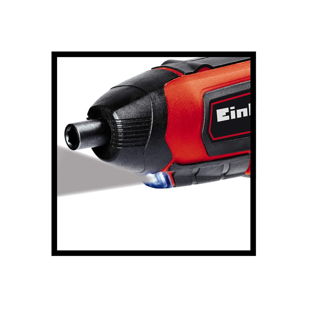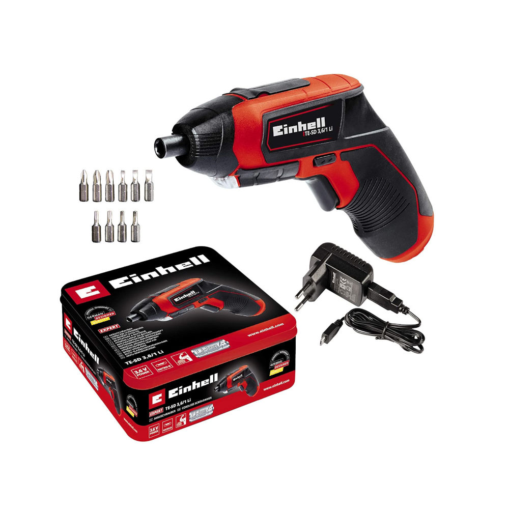 L'avvitatore a batteria Einhell TE-SD 3.6/1 Li ets maneggevole ed ergonomico. Il design ergonomico e il manico morbido "Softgrip" garantiscono una presa salda e confortevole. Il robusto ingranaggio in metallo è progettato per una lunga durata. L'avvitatore a batteria è sempre pronto all'uso grazie alla tecnologia di alta qualità agli ioni di litio senza autoscarica e all'innovativo meccanismo di ricarica con caricatore Micro-USB. L'avvitatore a batteria Einhell viene fornito con un set di 10 punte e una custodia in metallo di alta qualità per una conservazione sicura e a prova di urti. Le punte possono essere cambiate rapidamente e intuitivamente grazie al portainserti magnetico. L'illuminazione a LED assicura un lavoro ottimale anche in luoghi bui.