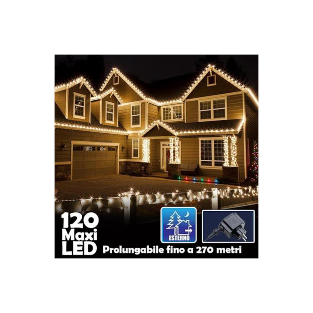 1 x Catena Luminosa Natalizia 120 Led Luce Bianco Caldo con Flash 9mt Esterno Prolungabile