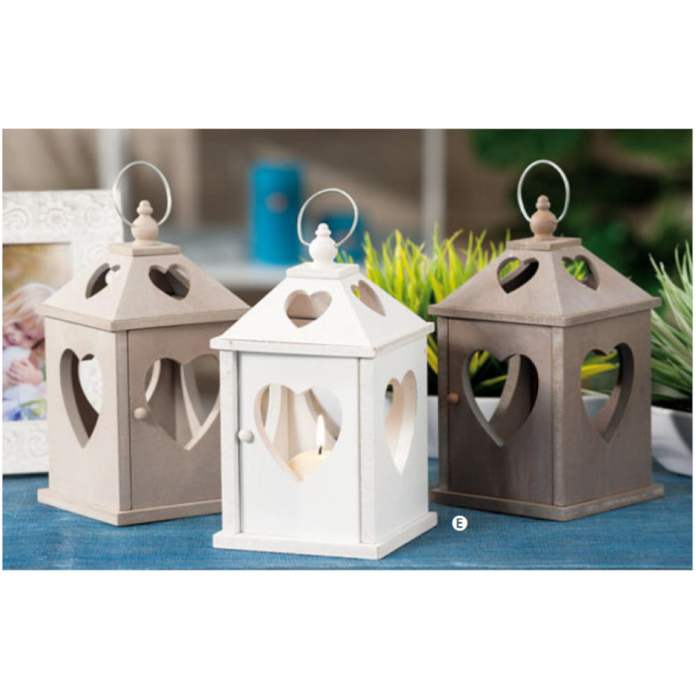 Lanterna portacandele in Legno disponibile nei colori beige e grigio.