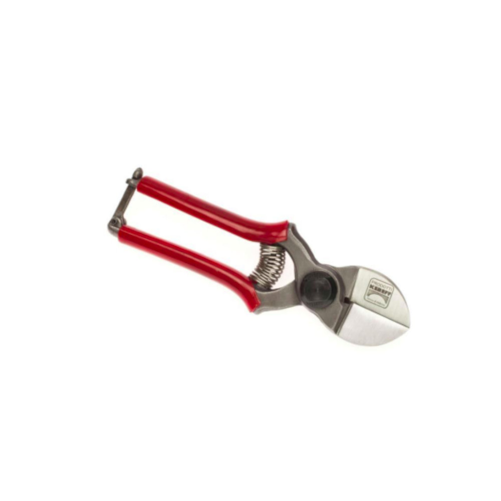 Permette grossi tagli con minimo sforzo senza schiacciare il ramo. La particolare rettifica anulare e la boccola in bronzo al centro dona maggior scorrevolezza e precisione alle forbici ed evita lo sballamento delle lame.