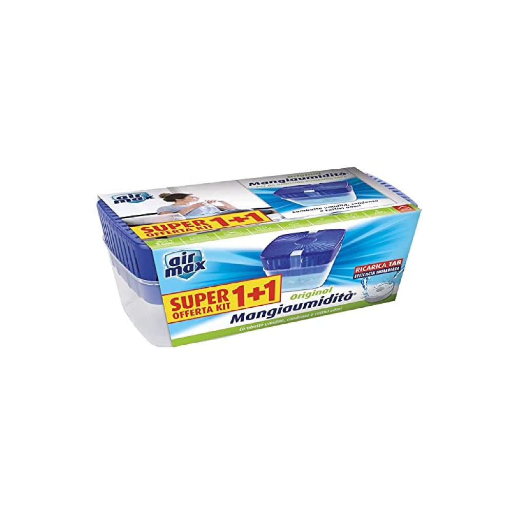 Confezione comprendente 2 dispositivi Mangiaumidità da 450gr e una ricarica tab da 450gr.