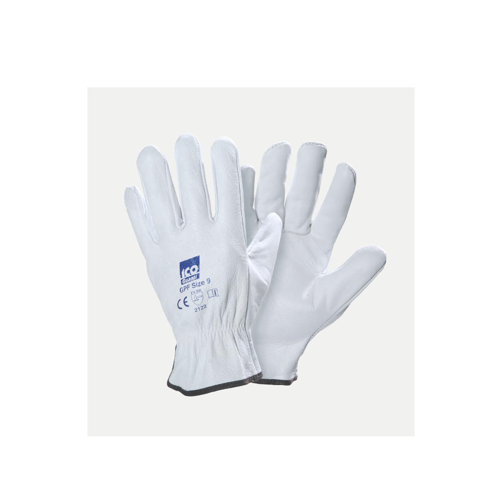 Guanto riusabile in PELLE FIORE. Forma americana, anatomico (mano destra e sinistra) con polsino bordato ed elastico stringi polso interno sul dorso della mano. Guanto conforme alla norma EN 420 per innocuità (pH, contenuto di Cr VI), destrezza e dimensioni taglie. Buona resistenza meccanica, lunga durata, buon comfort e destrezza per la forma anatomica del guanto.