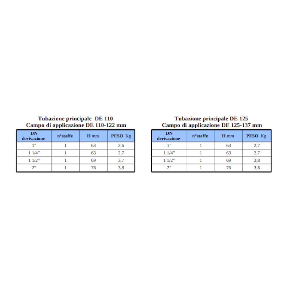 La particolare larghezza della staffa non permette alla tubazione in polietilene o in PVC di deformarsi durante il serraggio, garantendo quindi la tenuta tramite la guarnizione di forma rettangolare che è incassata in apposita sede e rimanere dunque spalleggiata lungo tutto il suo perimetro. La particolare larghezza e tipologia di serraggio della staffa consentono di avere un’ampia superficie di contatto tra la stessa staffa e il tubo, ma anche una tolleranza dimensionale che permette di utilizzare questo collare anche su tubazioni in acciaio, ghisa sferoidale e cemento amianto (ove rientri nelle tolleranze).