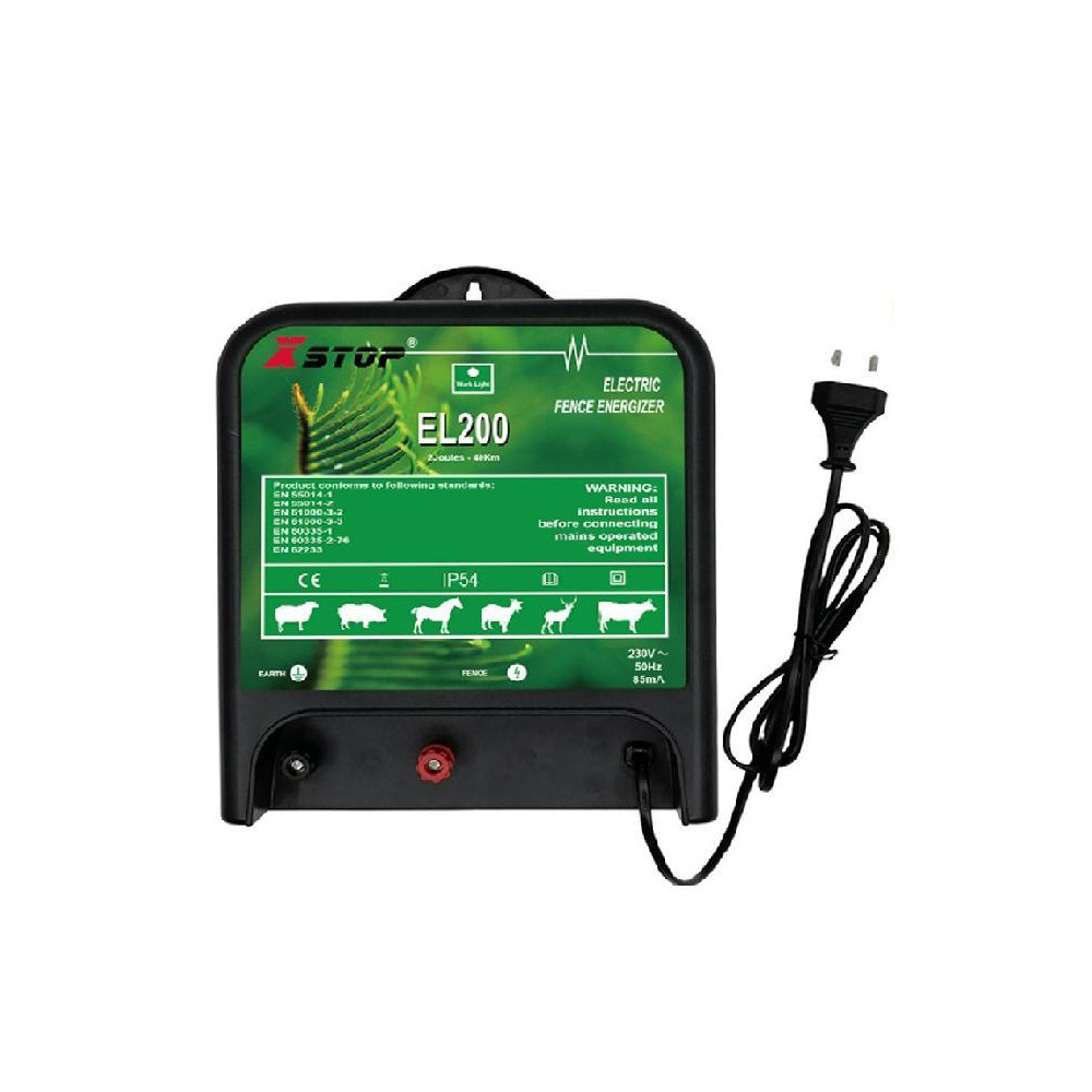 L'elettrificatore EL200 fornisce energia lungo 40 km di filo di recinzione in condizioni ideali ed è facile da monitorare con indicatore luminoso a LED.